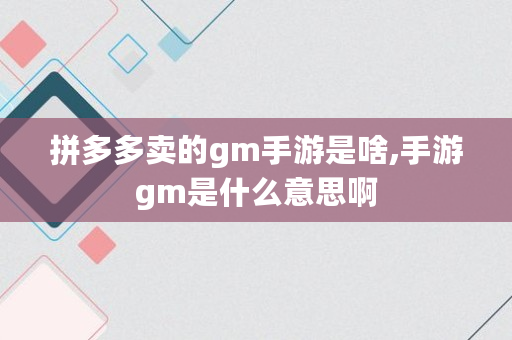 拼多多卖的gm意思是一款云端游戏变成了手机游戏
