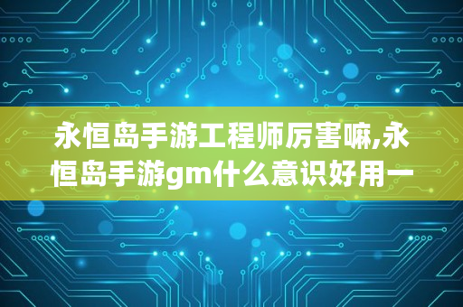 以上内容就是关于永恒岛手游gm什么意识好用的问题**解答了,如果对你有所帮助的话,请收藏关注本站,这里将更新更多关于永恒岛手游gm什么意识好用的内容。