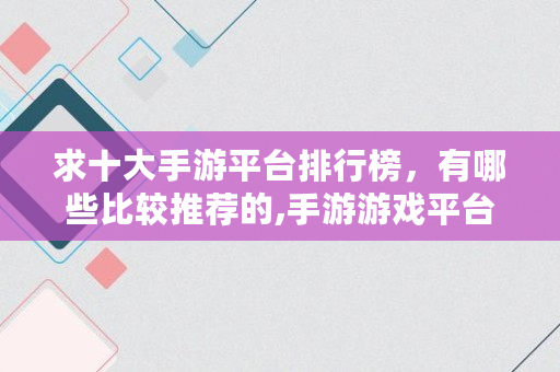 关于手游平台的问题其实主要是看你玩什么游戏了。