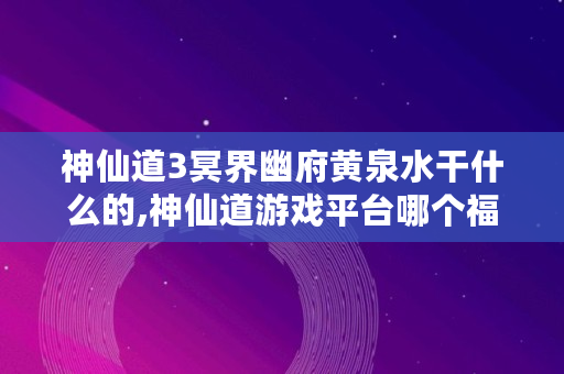 1. 神仙道3冥界幽府黄泉水是用来提升角色实力和获得特殊道具的。