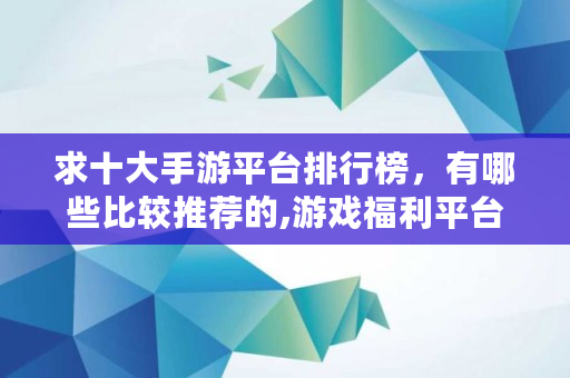 关于手游平台的问题其实主要是看你玩什么游戏了。