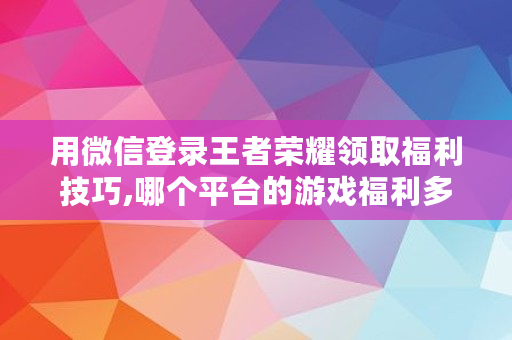 以上内容就是关于哪个平台的游戏福利多王者荣耀的问题**解答了,如果对你有所帮助的话,请收藏关注本站,这里将更新更多关于哪个平台的游戏福利多王者荣耀的内容。