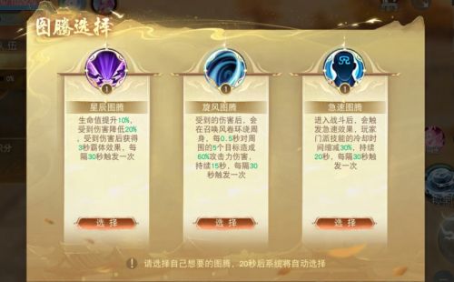少侠死亡时会弹出图腾界面,可从三种被动图腾中选择一种,并立即获得相应的属性BUFF,为战斗增添有利加成!不同战力少侠实际获得的图腾效果有所不同,图腾生效期间,连续击杀敌人会随机去掉1层图腾效果。