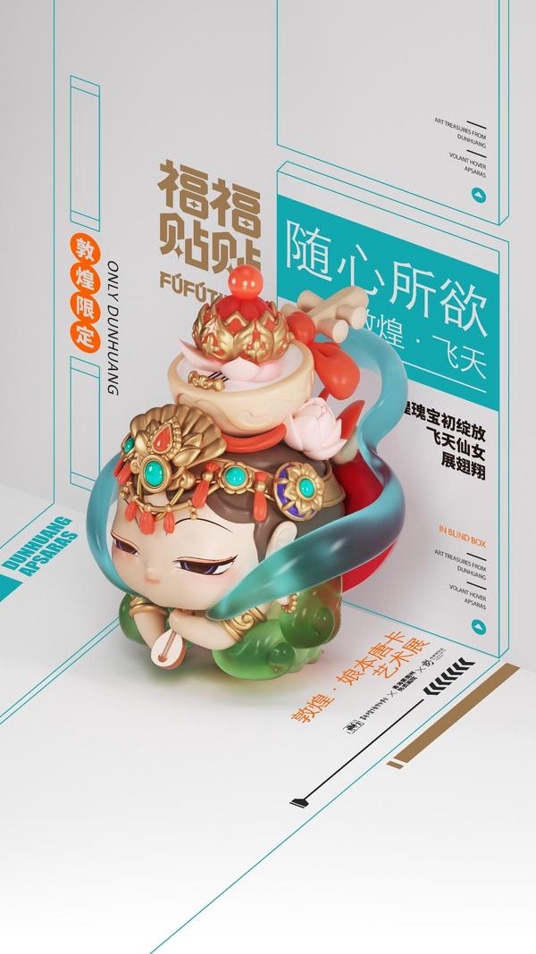 • 敦煌主题:联名敦煌博物馆推出“飞天仙子”盲盒,复刻壁画中的飞天飘带与乐器元素,取自壁画中的飞升姿态以“自由”的感知理念,并结合**传统绘画文化中的度量设计用于角色塑造,传递情感价值。此款系列产品荣获2024年“文创上海”创新创业大赛“**潜力奖”。
