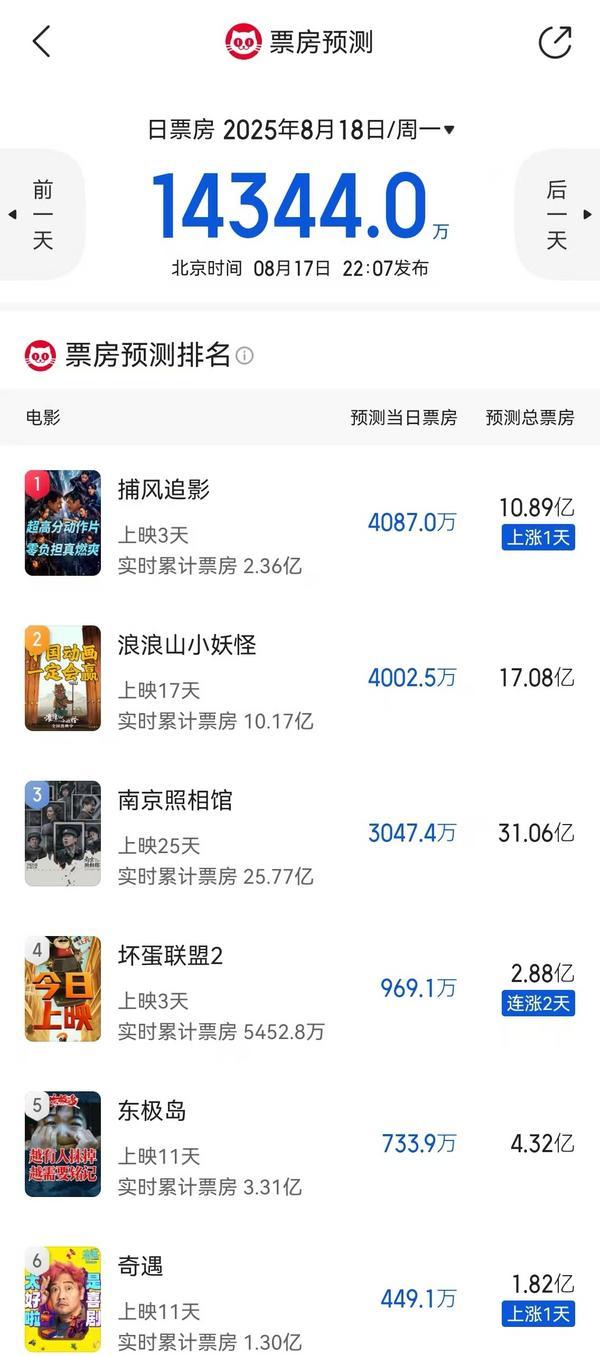 值得一提的是,继今年春节档之后,暑期档已诞生《南京照相馆》、《浪浪山小妖怪》两部票房超10亿元电影。