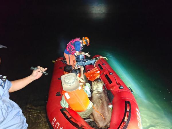图为8月3日消防队员对江门古兜山野游探险受困人员开展营救。(江门市应急管理局供图