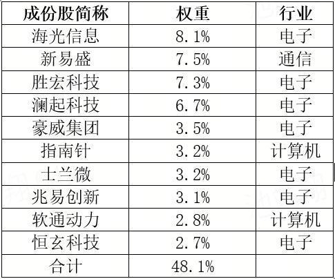 从成份股来看,国证成长100指数汇聚众多新质生产力行业中的龙头企业,前二十大成份股中,多家公司属于AI产业链、高端制造等前沿领域。具体来看,指数前十大成份股包括海光信息、新易盛、胜宏科技、澜起科技、豪威集团等,合计权重近50%,集中度较高。