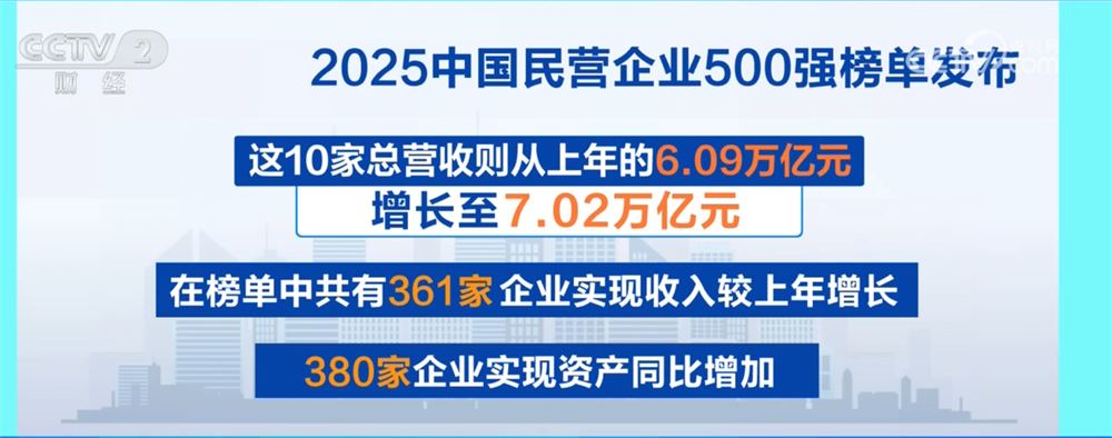 8月28日,**工商联在辽宁沈阳发布 “2025**民营企业500强榜单”,榜单由2024年营收前500名的民营企业构成。统计显示,民营企业500强整体规模持续提升,经营效益持续向好。