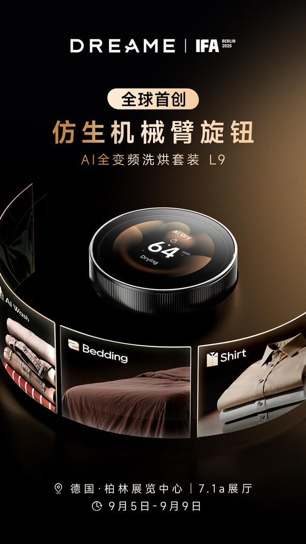 据**消息,追觅即将于今年9月在柏林**电子消费品展览会(IFA面向全球市场重磅推出其革命性洗护系列新品,包含 AI全变频洗烘套装L9、三筒洗衣机、内衣洗烘一体机等。正式进军全球高端洗护市场。此次发布不仅是追觅洗衣机品类的全球化首秀,更是**品牌重新定义**洗护标准的重要里程碑。