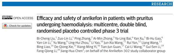财经9月1日讯 日前,海思科自主研发的原创新药“安瑞克芬”针对血液透析患者慢性肾**相关性瘙痒(CKD-aP的Ⅲ期临床研究成果登上全球**期刊《英国医学杂志》(The BMJ。该研究指出,安瑞克芬能有效缓解中重度血液透析患者的瘙痒,有望为CKD-aP患者带来新的**希望。
