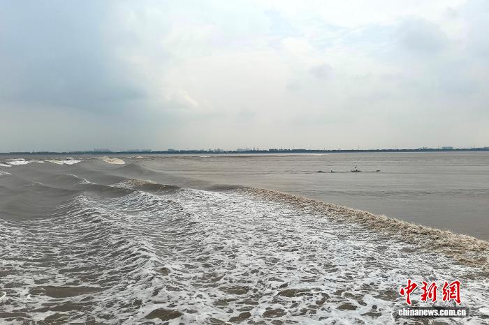 9月9日,在浙江省海宁市盐官镇出现的“鬼王潮”。 鲍梦妮 摄