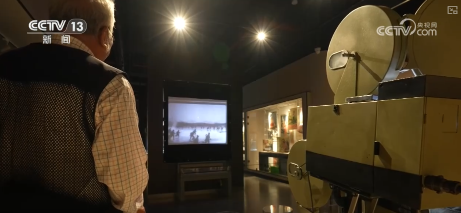 在涿州电影博物馆放映机展区,一台1984年出厂的“井冈山牌”放映机,正在放映1952年版的《南征北战》。