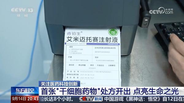 财经9月15日讯 昨日,**新闻频道报道了我国首款也是目前**获批的干细胞药品(艾米迈托赛注射液取得突破进展。首张干细胞****在京开出,接受该****的**患者现已顺利出院。报道称,“医疗科技创新点亮生命之光”。