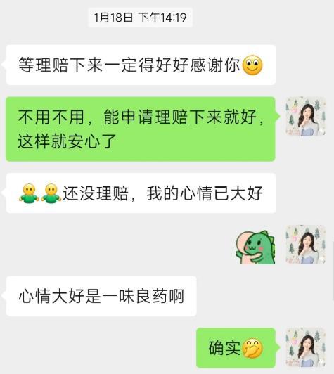 125天,于莉姐是生命与病魔的拉锯,是漫长而黑暗的**隧道;于小邝,则是一场与时间赛跑、与患者同频共进退的“保险理赔救援纪实”。 从深夜**恐慌的电话,到一遍遍细致沟通、补充材料;从解读晦涩条款,到指引沟通医疗证明,甚至默默记下莉姐接受化疗后的饮食变化……专业是小邝手中的利剑,精准地剖析规则、捍卫权益;而那份源自内心的关爱关怀,则是温暖的盾牌,守护着患者在至暗时刻的尊严与希望。