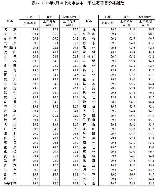 2025年9月份,70个大中城市中,各线城市商品住宅销售价格环比下降,同比降幅继续呈收窄态势。