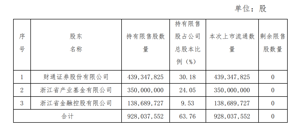 财经12月18日讯 今日,永安期货(证券代码:600927.SH发布相关公告表示,根据相关规定,公司本次上市流通的限售股为永安期货**公开发行部分限售股,涉及3名股东,共计9.28亿股(928,037,552股,占公司总股本的63.76%,锁定期为自公司股票上市之日起36个月,该部分限售股将于2024年12月23日锁定期满并上市流通。