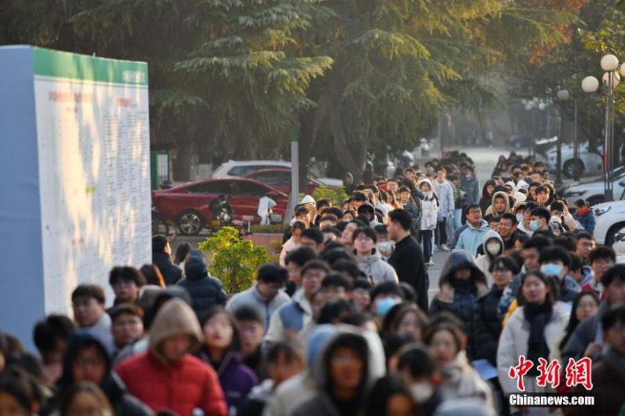 资料图:2023年12月23日,2024年考研开考,众多考生排队进入考场。中新网记者 杨华峰 摄