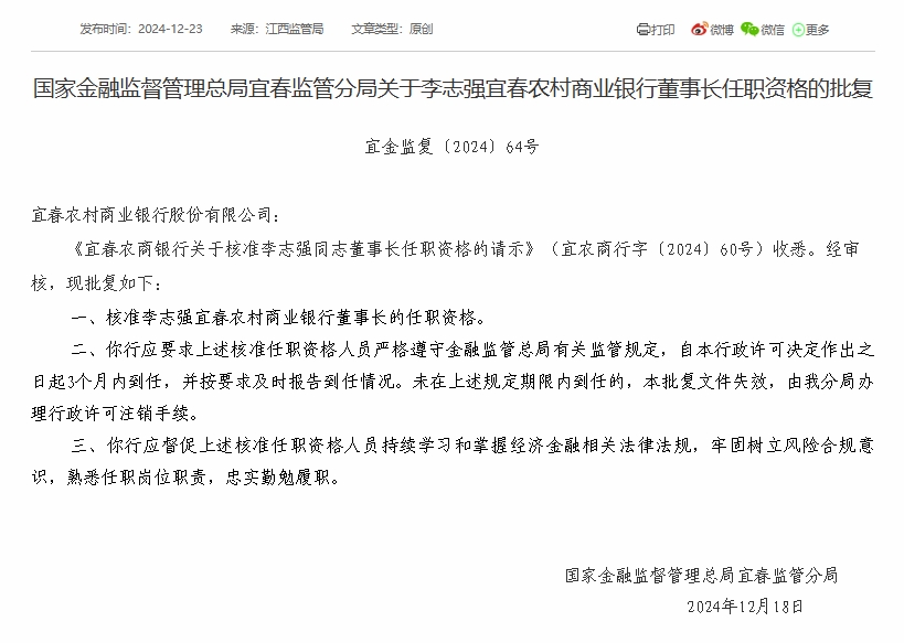 宜春农商银行董事长李志强任职资格获批巴适财经• 2024-12-23 18:21:35•简讯•阅读 4 财经12月23日讯 今日,**金融监督管理总局网站显示,**金融监督管理总局宜春监管分局核准李志强宜春农村商业银行董事长的任职**。 标签: 银行/ 阿斯利康Tagrisso欧盟获批,开辟非小细胞肺癌新治疗领域 上一篇2024-12-23彩虹星球起诉王海侵犯名誉权一审胜诉 创始人称接受消费者正常监督下一篇 2024-12-23相关推荐 高新兴:算力投资标的传佳绩 标的公司成立仅2月实现近3亿收入 2024年2月28日晚间,高新兴发布投资进展公告,公告中透露了其投资的图灵新智算(广州)科技有限公司(以下简称“广州图灵”)取得了显著的业绩。广州图灵自去年11月初成立以2024-12-23 18:21:351287 简讯简讯2024-12-23 18:21:35292 MEET48 上线 WEB3感谢祭并限时推出 GIPR2活动 Top16 偶像盲盒NFT,9月23日截止8月20日消息,据官方消息,MEET48 已上线WEB3感谢祭,推出GIPR2活动TOP16的特别偶像盲盒NFT。这些盲盒内含未曾发布的稀有偶像照片,用户可通过完成MEET48 网页或APP内任2024-12-23 18:21:35165 Circle IPO冲刺50亿美元估值,稳定币有概念股了?2025 年 3 月 31 日,加密货币行业迎来一则重磅新闻。据《财富》杂志报道,美元稳定币 USDC 的发行方 Circle 正在紧锣密鼓地推进其 IPO 计划,现已聘请摩根大通和花旗2024-12-23 18:21:35156 第七届进博会|首发经济,不只是一场消费盛宴题:新华社经济随笔:首发经济,不只是一场消费盛宴 前六届进博会,近2500项代表性首发新产品、新技术、新服务亮相,不少展商在中国开出新门店、新工厂、新研发中心。2024-12-23 18:21:35155 越南知名互联网论坛XAMVN即将通过Tokenfi Launchpad平台发行其专属代币TokenFi 宣布与越南最大的互联网论坛 XAMVN 达成战略合作,XAMVN 将通过 TokenFi Launchpad 独家推出原生代币。据悉,XAMVN 成立于 2017 年,是越南最大和最知名的网站2024-12-23 18:21:35133 上半年饮料业务破百亿 统一仍在“吃老本”统一企业中国提到,“统一鲜橙多”“海之言”“统一果漾”“统一冰糖雪梨”“元气觉醒”为主要品牌。 值得注意的是,在农夫山泉的带动下,近年来NFC果汁异军突起,统一、2024-12-23 18:21:35125 观点:比特币价格或于2025年1月特朗普就任总统时升至10万美元加密货币托管公司 Copper.co 的研究主管 Fadi Aboualfa 认为,到 2025 年 1 月 20 日特朗普就任总统时,比特币的价格可能会达到 10 万美元,他补充说,这些上涨“是在美2024-12-23 18:21:35109