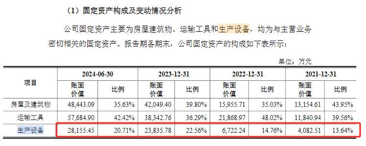 中力股份称,随着公司生产线的增加、作业流程的优化以及生产设备的改造,公司产能逐年增加。不过值得注意的是,2024年上半年末中力股份生产设备的账面价值,相当于2021年全年的7倍,但公司2024年全年产能折算下来约29万台,较2021年全年产能未见明显增长。