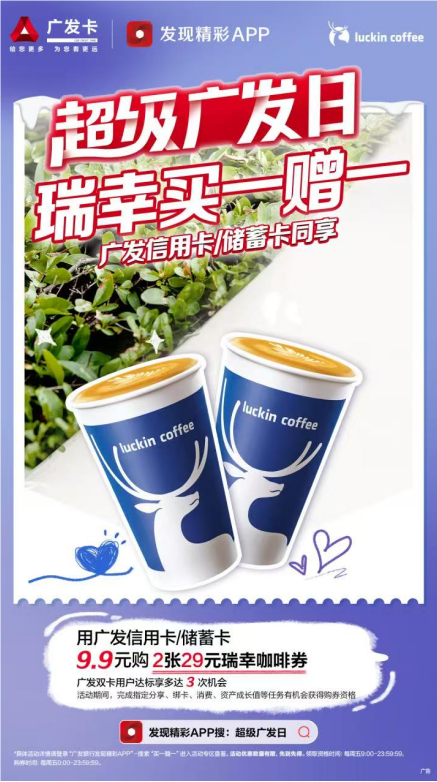 在最近的一次超级广发日活动中,广发借记卡用户**被纳入优惠活动范畴。广发银行借记卡用户有机会每周五支付9.9元购买两张价值29元的瑞幸咖啡券,享受买一赠一的超值优惠服务。在用户参与活动的条件中,其中一个即是添加广发银行企业微信。此举的目的就是通过优惠福利活动,撬动更多的零售客户进入到广发银行的私域服务体系,以便推进更加多元的综合金融服务。这一举措标志着广发信用卡在“三优三进”转型发展战略的指引下,与广发银行各零售板块的融合迈向了更深层次,为广发银行零售金融服务领域的创新融合注入了全新的活力与想象空间。