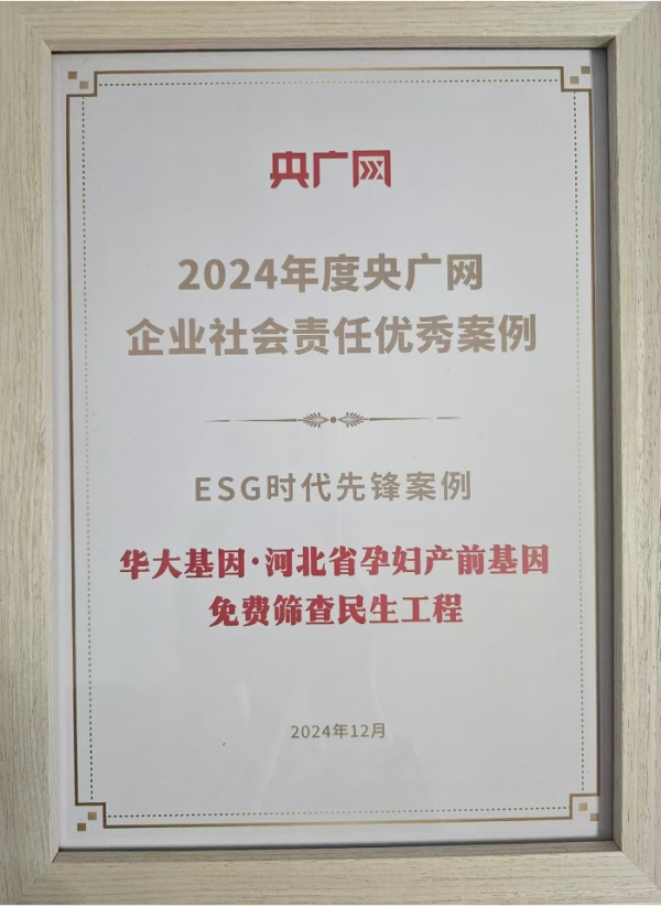 12月26日,由央广网、经济之声、北京丽泽金融商务区管理委员会联合主办的“央广网财经年度对话2024”活动在京举行,其中在“央广网企业社会责任主旨对话”环节,2024年度央广网企业社会责任**案例正式揭晓,华大基因凭借在河北省孕妇无创产前基因免费筛查民生工程中的**贡献,荣获“ESG时代先锋案例”奖。