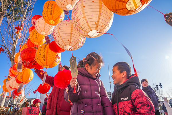 此次活动分“动”“静”两大区域,非遗展示与民俗体验交织。互动猜灯谜区域也备受欢迎,财神爷、孙悟空等造型的人偶穿梭在灯笼间,充满了欢乐祥和的气息。