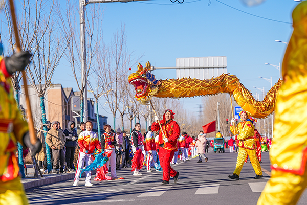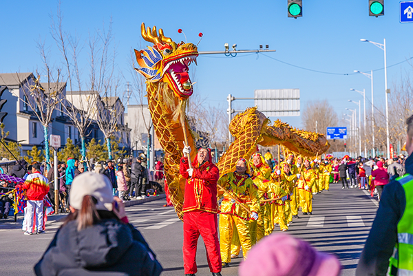 巡游过程中,威风大鼓、健身龙、广场舞、空竹等表演依次登场。