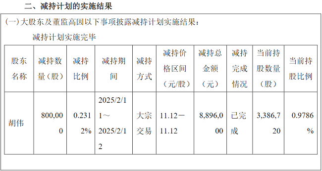 财经2月13日讯 普莱柯(603566.SH昨日晚间公告,公司董事、总经理胡伟近日通过大宗交易减持80万股,减持价格为11.12元/股,累计**889.6万元。减持后,胡伟持股数量从419万股减少至339万股,**持股比例约为1%,位列公司第八大股东。