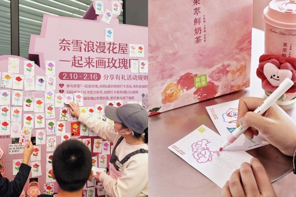 值得一提的是,奈雪还发起“一起画玫瑰”征集活动,最有才的“灵魂画手”将收获奈雪送的一整年“情人节”,即免费喝365杯茶饮。丰富的活动不仅将品牌的社交属性发挥到极致,更极大激发了消费者的参与热情。