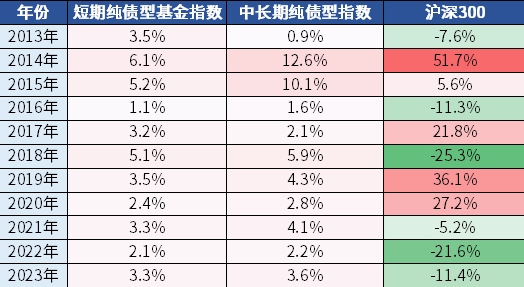 数据来源:Wind,采用万得基金指数,2013.01.01-2023.12.31,指数过往业绩走势不代表未来表现,不代表投资建议。