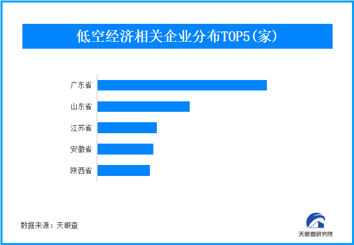 从地域分布来看,广东位居低空经济相关联企业数量榜首,达1万余家,占比15%;其次排第二位的为山东,拥有5800余家相关企业;此外,江苏、安徽、陕西紧跟其后,分别位居第三、第四和第五名。从成立时间来看,成立于1-5年的相关企业占比达到36.9%,成立1年以内的企业占比14.2%。