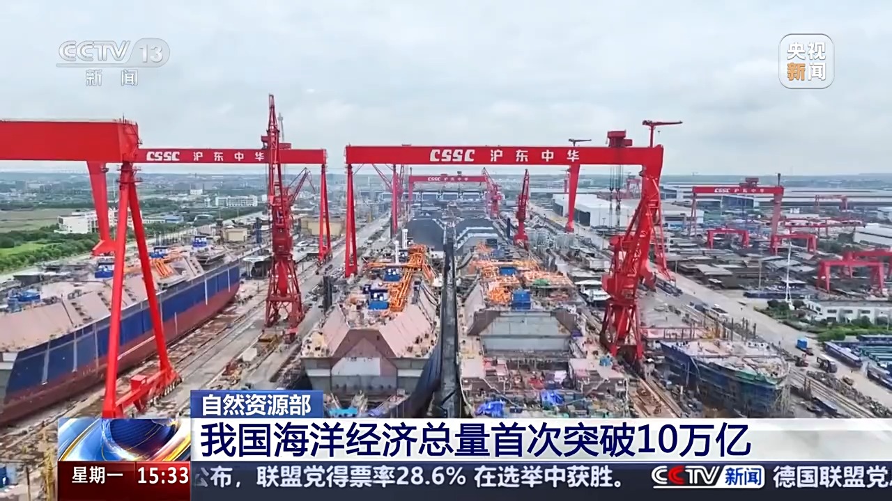 自然资源部今天(24日发布《2024年**海洋经济统计公报》,《公报》显示,2024年我国海洋经济总量再上新台阶,**突破10万亿。