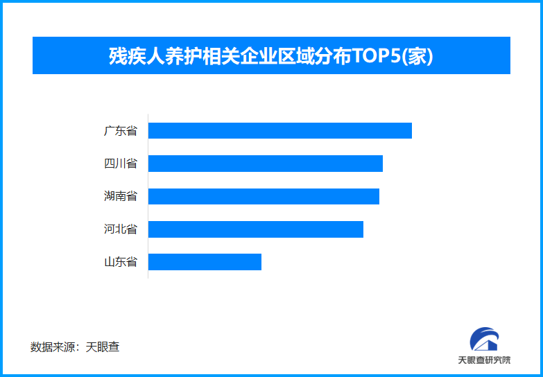 天眼查专业版数据显示,截至目前我国现存在业、存续状态的残疾人养护相关企业超9100家。从区域分布来看,广东省、四川省、湖南省和河北省残疾人养护相关企业数量位居前列,四个省市数量总和超过4800家,占企业总数的53.6%。
