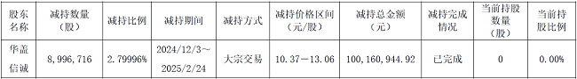 财经2月26日讯 昨日晚间,山外山(688410.SH公告称,公司第五大股东华盖信诚医疗健康投资成都合伙企业(有限合伙(下称“华盖信诚”自2024年12月2日至2025年2月24日期间累计减持其所持有的公司**股份899.67万股,占公司总股本的2.8%,**1亿元。本月,持股5.92%的第四大股东——高瓴资本关联公司珠海岫恒股权投资合伙企业(有限合伙(下称“珠海岫恒”也披露了减持计划,拟减持不超过2.92%的股份。
