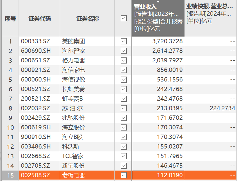 将范围扩大,在A股74只家电类上市公司中,仅15家2023年营收超百亿。