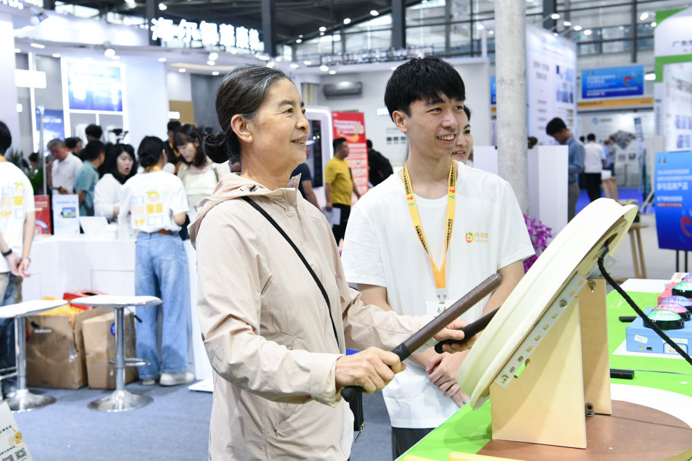 2024年10月27日,老人在2024深圳**智慧养老产业博览会上体验乐龄鼓。新华社记者 梁旭 摄