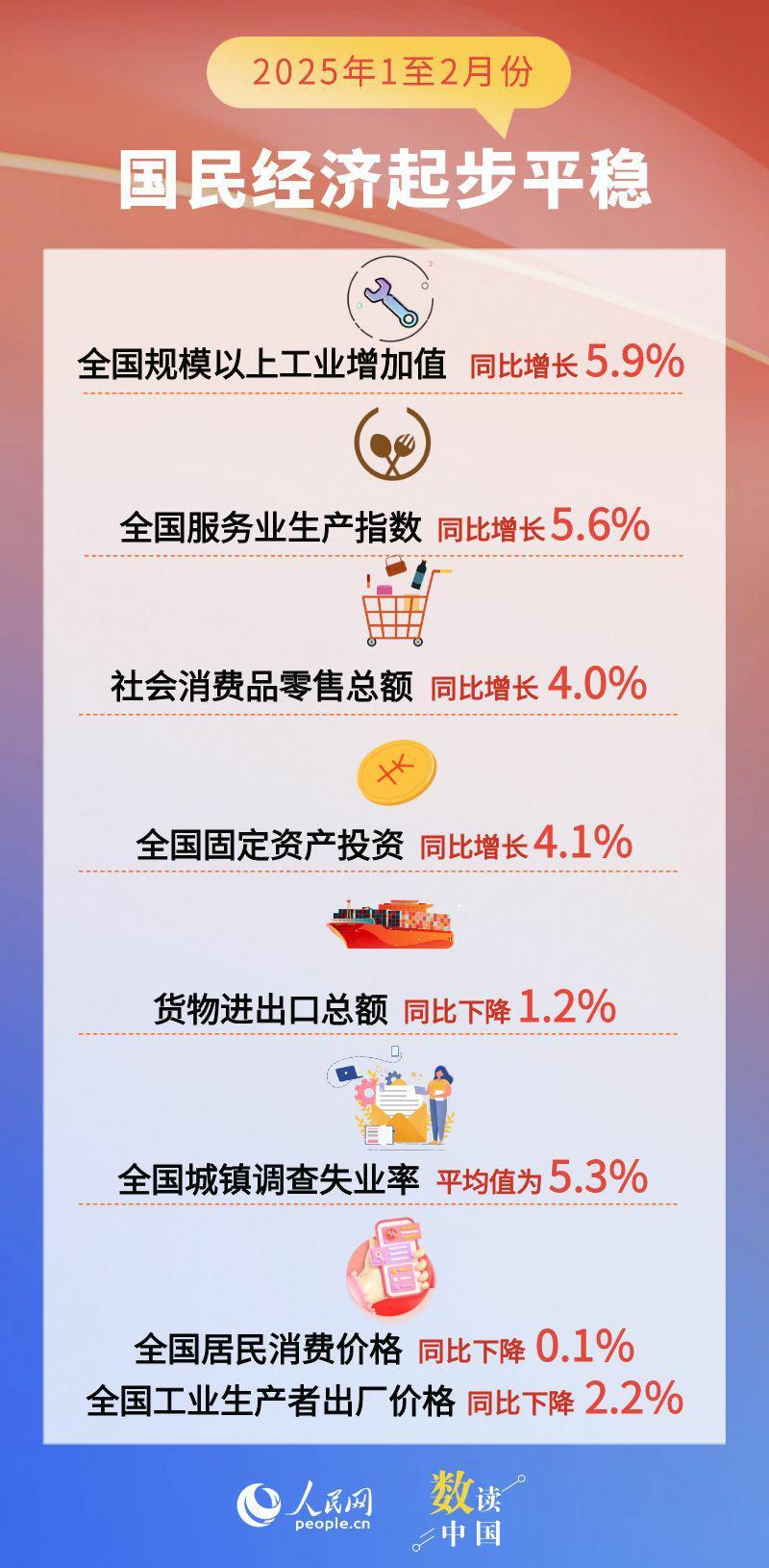****今日发布数据显示,1至2月份,一揽子存量政策和增量政策继续发力显效,工业服务业较快增长,消费投资继续改善,就业形势总体稳定,新质生产力成长壮大,经济运行起步平稳,发展态势向新向好。