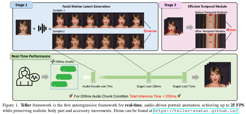 近期,IEEE**计算机视觉与模式识别会议( Conference on Computer Vision and Pattern RecognitionCVPR 2025公布论文录用结果,社交平台Soul App技术论文《Teller: Real-Time Streaming Audio-Driven Portrait Animation with Autoregressive Motion Generation》(《基于自回归动作生成的实时流式音频驱动人像动画系统》被接收。
