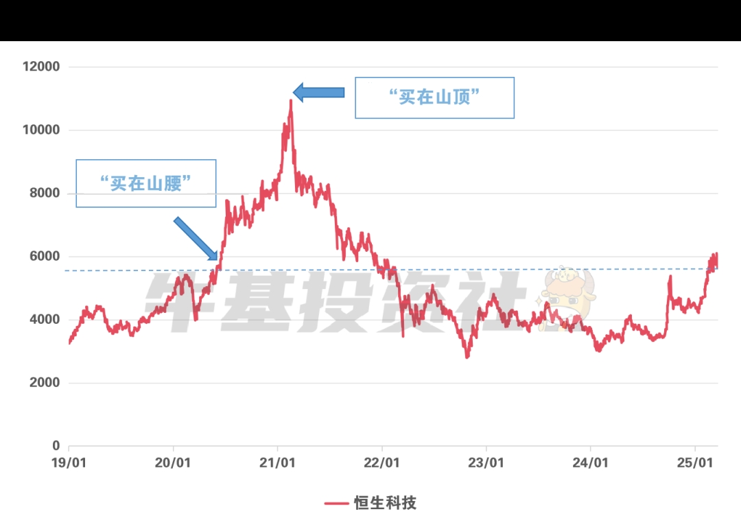 目前恒生科技指数已经涨了一轮了,即使是向2020年到2021年的那一轮牛市看齐,那也是在山腰上,不算是在山脚下了。