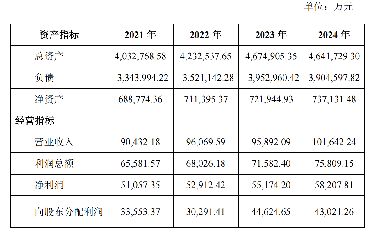 京能集团财务公司2021年-2024年的主要财务数据如下表所示: