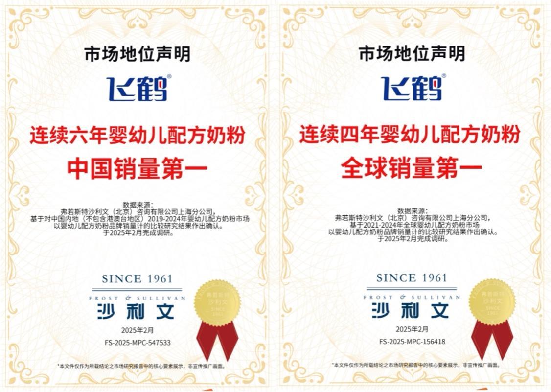 得益于**的科研成果和产品布局,飞鹤已经实现**婴幼儿配方奶粉市场连续六年销量**,全球连续四年销量**。