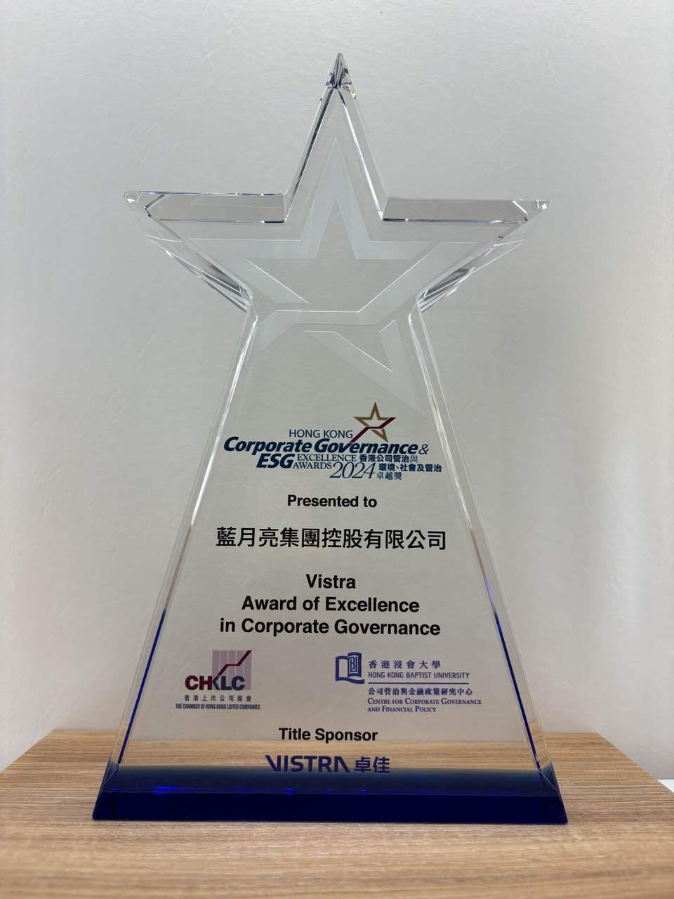 此外,蓝月亮在2024年还获得ESG领域多个重磅奖项:由香港上市公司商会与香港浸会大学公司管治与金融政策研究**联合颁发的“公司管治**奖”,以及第六届BDO环境、社会及管治(ESG大奖之““**ESG报告大奖(中市值”优异奖”,显示出业界对蓝月亮经营管理及ESG表现的充分肯定。
