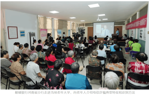 邮储银行各级机构主动适应老年群体金融知识需求,推出暖心适老化服务,提升银发消费者金融获得感。河南省分行走进郑州市当地的老年大学,向老年群体详细解说“电信**”运作链条、典型特征和识别方法,向老年人普及如何规避**“陷阱”。