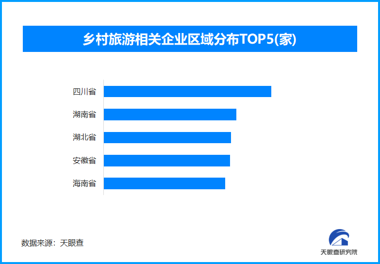 天眼查专业版数据显示,截至目前我国现存在业、存续状态的乡村旅游相关企业超61.4万家。其中,2024年新增注册相关企业约7.1万余家。从区域分布来看,四川省、湖南省、湖北省乡村旅游相关企业数量位居前列,分别为超4.9万余家、3.9万余家和3.7万余家。排在其后的是安徽省和海南省。