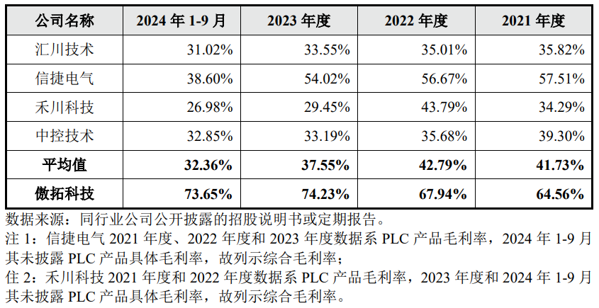 对公司明显超高毛利率水平的合理性,傲拓科技解释称,公司毛利率较高且高于PLC同行业公司,主要是由于产业链位置、产品类型、客户类型、应用领域、销售模式和同行业公司存在**差异,在中大型PLC细分领域内尚未面临**企业的激烈竞争,可参照国外品牌进行定价,利润空间较高,且“轻资产”的经营模式进一步**了成本。