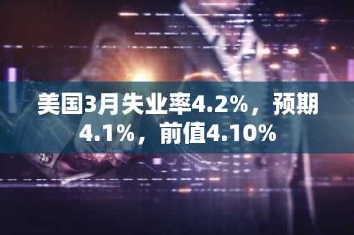 BlockBeats 消息,4 月 4 日,美国 3 月失业率 4.2%,预期 4.1%,前值 4.10%。(金十)