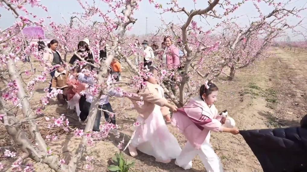 在山东菏泽郓城县陈坡乡,第二届桃花节吸引大量游客。上千株桃花争奇斗艳,戏曲、舞蹈、歌曲等文艺演出融入桃花元素,为游客呈现一场视听盛宴。