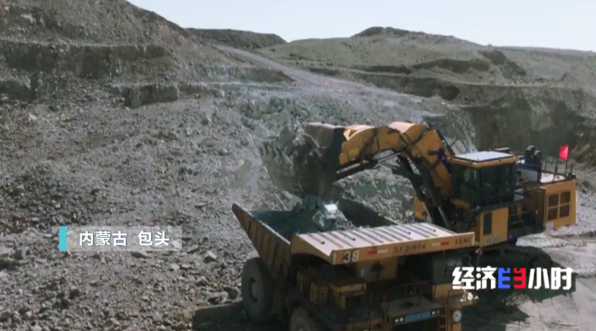 在内蒙古包头市包钢白云鄂博铁矿,电铲式挖掘机的巨型铲斗,一次可以铲起10立方米的矿石。