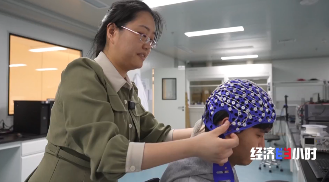 在杭州,脑机接口研究员董越正在进行脑电信号的采集测试。她和团队将人的大脑作为研究对象,用电波和代码抓取、破译大脑皮层的细微动态。