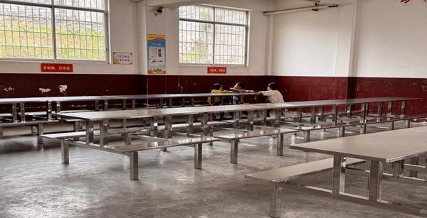 “食堂的餐桌是最急需的,老的餐桌早已经掉漆、破损,一体化的配套圆凳也掉了不少,孩子们有时候只能站着吃饭。”学校韦克贤校长介绍,而且因为餐桌数量不足,总有一两个年级的孩子需要轮流吃饭。